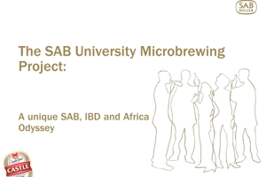 n 2004, following on from extensive Trade Brewer negotiation, an opportunity arose for SAB to sponsor the installation and commissioning of a small-scale piece of Brewing Kit at the University of Kwa-Zulu Natal’s Pietermaritzburg campus, certainly a first of its kind in South Africa. Following this successful introduction, and further requests for Installations from University of Pretoria, Witwatersrand and others, a plan was put together to harness the collective power of this combined Micro-Brewing endeavour. By 2006, extensive collaboration between The South African Breweries Limited (SAB), The Institute of Brewing and Distilling Africa Section (IBD) and the RSA State-owned Food/Bev SETA led to the sponsoring of the traineeship of selected students in various Brewing disciplines in South Africa.