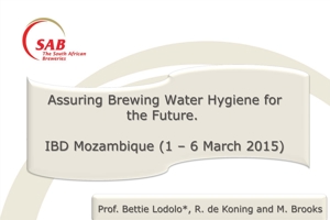The proud tradition of beer culture has evidence of historic roots as far back as 5 000 B.C. Given the choice between water or beer as the safer beverage to consume, the preference was for beer due to the bacteriostatic properties afforded by the presence of alcohol, low pH, low nutrient availability and the presence of hops. Water remains the main ingredient in beer forming about 95% of a 5% v/v alcohol product. The demand on scarce resources, such as water, informed one of the SABMiller 10 priorities of “Making more beer using less water” with the aim of 3.5 hl/hl beer by 2015. In order to achieve this aim a number of work programs were developed in support of this objective.