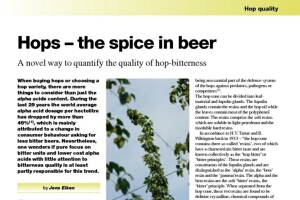 When buying hops or choosing a hop variety, there are more things to consider than just the alpha acids content. During the last 25 years the world average alpha acid dosage per hectolitre has dropped by more than 45%(1), which is mainly attributed to a change in consumer behaviour asking for less bitter beers. Nevertheless, one wonders if pure focus on bitter units and lower cost alpha acids with little attention to bitterness quality is at least partly responsible for this trend.