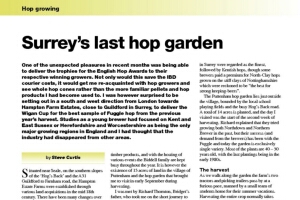One of the unexpected pleasures in recent months was being able to deliver the trophies for the English Hop Awards to their respective winning growers. Not only would this save the IBD courier costs, it would get me re-acquainted with hop growers and see whole hop cones rather than the more familiar pellets and hop products I had become used to. I was however surprised to be setting out in a south and west direction from London towards Hampton Farm Estates, close to Guildford in Surrey, to deliver the Wigan Cup for the best sample of Fuggle hop from the previous year’s harvest. Studies as a young brewer had focused on Kent and East Sussex or Herefordshire and Worcestershire as being the only major growing regions in England and I had thought that the industry had disappeared from other areas.