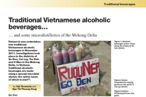 Research was undertaken into traditional Vietnamese alcoholic beverages in November 2011. Investigations took place in the districts of Go Den, Cai Lay, Tra Vinh and O Mon in the Mekong Delta. In Vietnam, traditional alcoholic beverages are made using a special microbial starter, the native name of which is men