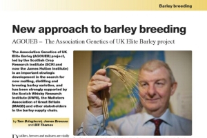 The Association Genetics of UK Elite Barley (AGOUEB) project, led by the Scottish Crop Research Institute (SCRI and now the James Hutton Institute) is an important strategic development in the search for new malting, distilling and brewing barley varieties, and has been strongly supported by the Scotch Whisky Research Institute (SWRI), the Maltsters Association of Great Britain (MAGB) and other stakeholders in the barley supply chain.