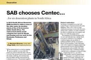 In 2010 South African Breweries (SAB) decided to replace some of the older water de-aeration plants at five of its breweries within South Africa. The replacement plants would comprise two each for Alrode and Rosslyn and one each for the Newlands, Polokwane and Ibhayi.