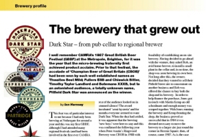 I well remember CAMRA’s 1987 Great British Beer Festival (GBBF) at the Metropole, Brighton, for it was the year that the micro-brewing fraternity first achieved product acclaim. Prior to that festival, the accolade of ‘Champion Beer of Great Britain (CBOB)’ had been won by such well established names as Thwaites Best Mild; Fullers ESB and Chiswick Bitter, Timothy Taylor Landlord and Batemans XXXB, but to an astonished audience, a totally unknown name, Pitfield Dark Star was announced as the winner.