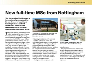 The University of Nottingham is internationally recognised for its excellence in teaching in Brewing Science and will introduce a new full-time Masters course in Brewing, commencing September 2014.