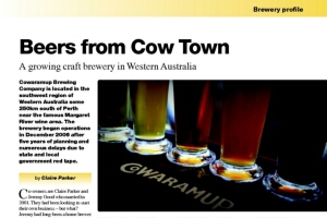 Cowaramup Brewing Company is located in the southwest region of Western Australia some 250km south of Perth near the famous Margaret River wine area. The brewery began operations in December 2006 after five years of planning and numerous delays due to state and local government red tape.
