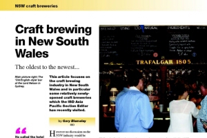 This article focuses on the craft brewing industry in New South Wales and in particular some relatively newlyopened craft breweries which the IBD Asia Pacific Section Editor has recently visited.