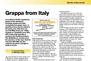 According to the EC regulations, grappa is the spirituous beverage produced in Italy exclusively from grape marc. A quantity of lees may be added to the grape marc that does not exceed 25kg of lees per 100kg of grape or contribute more than 35%of the total quantity of alcohol in the finished product. The distillation is carried out in the presence of the marc itself at less than 86%ABV and the minimum alcoholic strength in bottle is 37.5%.
