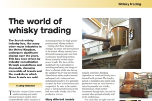 The Scotch whisky industry has, like many other major industries in the United Kingdom, undergone significant change over the years. This has been driven by industry consolidation through acquisitions and disposals, changing ownership of brands and the markets in which these brands are sold.