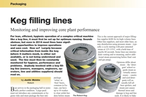 For lean, efficient, hygienic operation of a complex critical machine like a keg line, it must first be set up for optimum running. Sounds obvious, but even in 2014 most lines have significant opportunities to improve operations and save cost. How so? Largely because critical information from inside the keg (where it matters most), is either not available, or is not being understood and used. The line must then be constantly monitored for hygiene, performance and problems. Anybody involved with a keg filling line (owners, managers, engineers, operators, line and utilities suppliers) should read on.