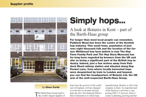 For longer than most local people can remember, Paddock Wood has been the centre of the Kentish hop industry. This small town, population of just over eight thousand folk and the location of the former Whitbread hop farm (which is now The Hop Farm Family Park and The Hop Story Museum) has for long been regarded by brewers from the UK and afar as being a significant part of the British hop industry. Indeed, just a few metres away from Paddock Wood railway station and situated along Hop Pocket Lane, from where locally harvested hops were despatched by train to London and beyond, you can find the headquarters of Botanix Ltd, the UK arm of the well-respected Barth-Haas Group.