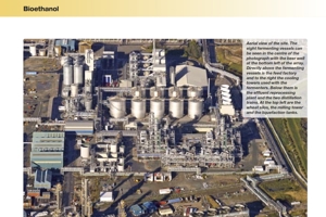 Bioethanol is produced from plant starch by enzyme conversion to sugars, followed by fermentation to a 12% ABV ‘beer’. This beer is then concentrated through a two-stage fractional distillation to produce azeotropic ethanol at 95% ABV, before further processing through a molecular sieve to produce anhydrous 99.7% ABV ethanol.