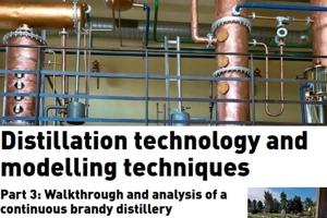 Part 3: Walkthrough and analysis of a continuous brandy distillery In this third and final part of the series, Konrad Miller presents an overview of a continuous distillery, with analysis of fermentation, distillation, and congener removal. As discussed in a prior article, distillation is a science with many applications; petroleum, commodity chemicals, and biofuels among them. However, the genesis of distillation was in the production of alcoholic beverages.