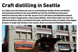 As a follow up to the feature last June on craft distilling in Seattle, Brewer and Distiller International promised you two more distilleries from the city billed as having more distilleries than any other in the USA. As part of our Craft Spirits and Distillation themed edition we feature Copperworks, where owner/distiller Jason Parker didn’t just ‘pick’ his stills but had them made in Scotland by Forsyths, and Emerson Lamb, President of the biggest producer of single malt whiskey in the country, shows us around the Westland Distillery.