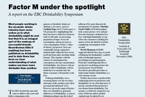 Most people working in the alcoholic drinks industry have some notion as to what drinkability might be and feel that it is an integral part of the makeup of successful brands. Nevertheless little if anything has been published on drinkability and to date there has been no clear understanding of what makes one beer more drinkable than another.