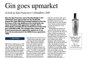 Near the San Francisco end of the Bay Bridge in the windswept open spaces that are the docklands beyond the huge SBC Park baseball stadium is Pier 50, the home of the only distillery in the world built over water. Complete with aggressive seagulls, this is China Basin and built into the landward end of the long pier is Distillery 209. The strange name refers to the Federal government’s registration system for it can trace its ancestry back to the 209th licence granted in 1882.