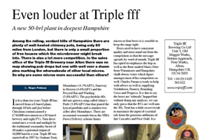 Among the rolling, verdant hills of Hampshire there are plenty of well-heeled chimney pots, being only 50 miles from London, but there is only a small proportion of free houses which the microbrewer might break into. There is also a lot more competition. In the sales office of the Triple fff Brewery near Alton there was no map showing pub drops but one with well over a dozen pins marking the whereabouts of other local micros. So why are some micros more successful than others?