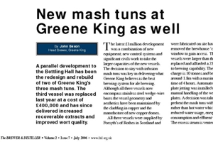 A parallel development to the Bottling Hall has been the redesign and rebuild of two of Greene King’s three mash tuns. The third vessel was replaced last year at a cost of £400,000 and has since delivered increased recoverable extracts and improved wort quality.
