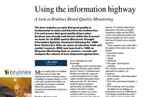 The beer industry accepts that good quality is fundamental to sales and therefore the bottom line. It is well proven that good quality drives sales. Brulines was already well known within the licensed on-trade for its EDIS system (Electronic Draught Information System), developed following the 1989 Beer Orders Act. After six years of extensive trials and market research, EDIS was launched in 1995 as Dispense Monitoring that, in essence, records and analyses the volume of beer dispensed against time.