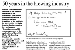 Horace Tabberer Brown was one of the original members of the Laboratory Club, which became the Institute of Brewing and was President of the Institute in 1891–92. In 1916 at a London Section meeting he read a paper “Reminiscences of 50 years experience of the application of Scientific Method to Brewing Practice”. As I have also been in brewing for 50 years – and my family 200 years in total – it seemed appropriate to do the same.
