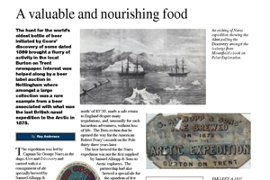 The hunt for the world’s oldest bottle of beer initiated by Coors’ discovery of some dated 1869 brought a flurry of activity in the local Burton on Trent newspaper. Interest was helped along by a beer label auction in Nottingham where amongst a large collection was a rare example from a beer associated with what was the last British naval expedition to the Arctic in 1875.