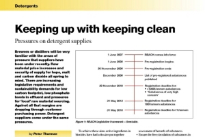 Brewers or distillers will be very familiar with the areas of pressure that suppliers have been under recently. Raw material price increases and security of supply for hops, malt and carbon dioxide all spring to mind. There are increasing legislative requirements and sustainability demands for low carbon footprint, low phosphate levels in effluent and pressures for ‘local’ raw material sourcing. Against all that margins are dropping through customer purchasing power. Detergent suppliers come under the same pressures.