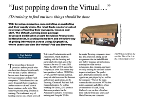 With brewing companies concentrating on marketing and their supply chain, the retail trade needs to look at new ways of training their managers, lessees and staff. The Virtual Learning Zone package developed by Bill Allen at AVS Television Productions in Manchester, is a uniquely modern and effective way of getting information across using 3D graphics, where users can view the ‘virtual’ Pub and Brewery.