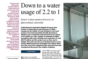 If Abbotsford is Australia’s biggest brewery, then Fosters at Yatala (the locals pronounce it Yatla – leaving out the middle ‘a’) near Brisbane is its most modern and environmentally friendly. Brewing to filtration was completely modernised from an output of 2.3 million to a site capable of making 5.5 million hectolitres with only a handful more operators. It cost A$170 million and the project was on time and in budget. The only new pieces of equipment were a two stream 850hl brewhouse by Briggs and a Filtrox filter; all of the rest of the equipment was relocated from the closing Kent Brewery in the middle of Sydney.