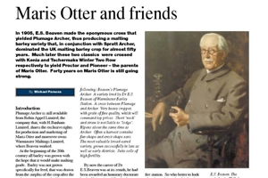 In 1905, E.S. Beaven made the eponymous cross that yielded Plumage Archer, thus producing a malting barley variety that, in conjunction with Spratt Archer, dominated the UK malting barley crop for almost fifty years. Much later these two classics were crossed with Kenia and Tschermaks Winter Two Row respectively to yield Proctor and Pioneer – the parents of Maris Otter. Forty years on Maris Otter is still going strong.