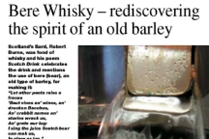 Scotland’s Bard, Robert Burns, was fond of whisky and his poem Scotch Drink celebrates the drink and mentions the use of bere (bear), an old type of barley, for making it: “Let other poets raise a fracas ’Bout vines an’ wines, an’ drucken Bacchus, An’ crabbit names an’ stories wrack us, An’ grate our lug: I sing the juice Scotch bear can mak us, In glass or jug.”