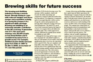 The brewing and distilling industry is facing a serious threat. Already having to cope with reduced margins and fierce merger and acquisition activity, it is facing the prospect of a significant skills shortage. Brewing and distilling is an extremely valuable contributor to the UK economy. It generates over £11.1bn each year, employs over 25,000 people across Great Britain and is considered by many to be a growth sector. For example, distilled alcohol drinks turnover grew from £3bn in 1997 to £3.2bn in 2005, an increase of 7% over this period.