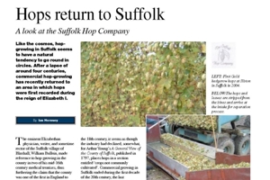 Like the cosmos, hopgrowing in Suffolk seems to have a natural tendency to go round in circles. After a lapse of around four centuries, commercial hop-growing has recently returned to an area in which hops were first recorded during the reign of Elizabeth I.