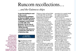 It was fascinating to read of the recent developments at Diageo at Runcorn (B&DI January 2007). I had the pleasure of playing a round of golf recently with John Bowman. He too was at Guinness, Runcorn in the 1970s and also remembers with pleasure crossing the Irish Sea on a Guinness ship.