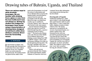 There are various ways to drink alcoholic beverages. We are familiar with drinking from a glass or even from the beer bottle but it was not always so. During my studies into indigenous beverages I have found unique characteristics of drawing tubes designed to hold back solids when drinkers consume direct from the fermenting vessel.