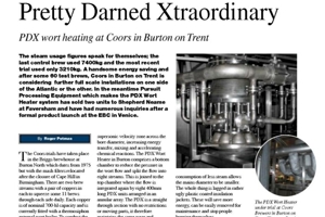 The steam usage figures speak for themselves; the last control brew used 7400kg and the most recent trial used only 3210kg. A handsome energy saving and after some 60 test brews, Coors in Burton on Trent is considering further full scale installations on one side of the Atlantic or the other. In the meantime Pursuit Processing Equipment which makes the PDX Wort Heater system has sold two units to Shepherd Neame at Faversham and have had numerous inquiries after a formal product launch at the EBC in Venice.