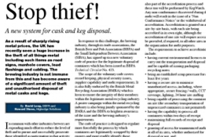 As a result of sharply rising metal prices, the UK has recently seen a huge increase in the theft of all things metal including such items as road signs, manhole covers, lead flashings and cabling. The brewing industry is not immune from this and has become aware of a significant amount of theft and unauthorised disposal of metal casks and kegs.