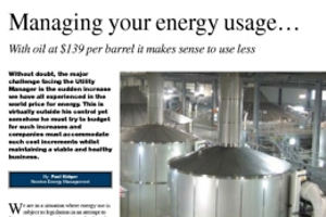 Without doubt, the major challenge facing the Utility Manager is the sudden increase we have all experienced in the world price for energy. This is virtually outside his control yet somehow he must try to budget for such increases and companies must accommodate such cost increments whilst maintaining a viable and healthy business.