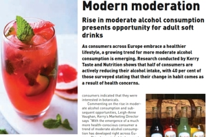 As consumers across Europe embrace a healthier lifestyle, a growing trend for more moderate alcohol consumption is emerging. Research conducted by Kerry Taste and Nutrition shows that half of consumers are actively reducing their alcohol intake, with 40 per cent of those surveyed stating that their change in habit comes as a result of health concerns.