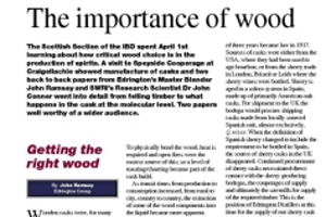 The Scottish Section of the IBD spent April 1st learning about how critical wood choice is in the production of spirits. A visit to Speyside Cooperage at Craigellachie showed manufacture of casks and two back to back papers from Edrington’s Master Blender John Ramsay and SWRI’s Research Scientist Dr John Conner went into detail from felling timber to what happens in the cask at the molecular level. Two papers well worthy of a wider audience.