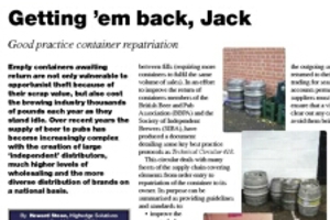 Empty containers awaiting return are not only vulnerable to opportunist theft because of their scrap value, but also cost the brewing industry thousands of pounds each year as they stand idle. Over recent years the supply of beer to pubs has become increasingly complex with the creation of large ‘independent’ distributors, much higher levels of wholesaling and the more diverse distribution of brands on a national basis.