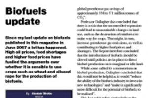 Sincemy last update on biofuels published in thismagazine in June 2007 a lot has happened. High oil prices, food shortages and higher food prices have fuelled the arguments over whether it is sensible to use crops such as wheat and oilseed rape for the production of biofuels.