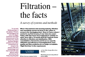 When I first started in the brewing industry, filtration was something carried out down in the cellars or across in the ‘packaging store’. Even in France where I worked in my first brewery, it was ‘dans les caves’. Today, with take-home beer beginning to outstrip onsales, beer with a 12 month shelf life required closer attention to filtration and stabilisation. With consolidation of breweries and focus on capacity utilisation and efficiency of packaging lines, beer quality and filter problems are no longer acceptable. ‘Right first time’ is the requirement.