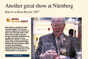 Brau is like an old friend; solid and dependable. The event is relaxed, suppliers are pleased to talk to you and after quite a few years now, we know our way around. The 2007 exhibition was no different, but there were 1800 fewer visitors occasioned by the drivers of Deutsche Bahn striking over their pension rights so some day delegates, particularly those from the east, failed to make it. Were there a lot of Brits there? I am afraid not.